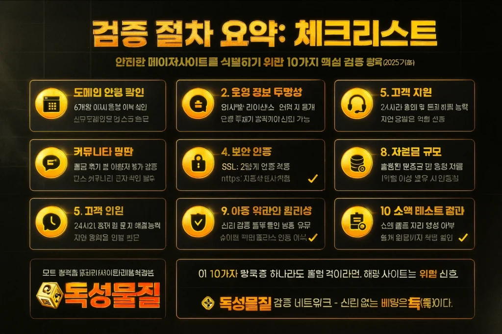 먹튀검증을 체계적으로 수행하기 위한 필수 체크리스트입니다: