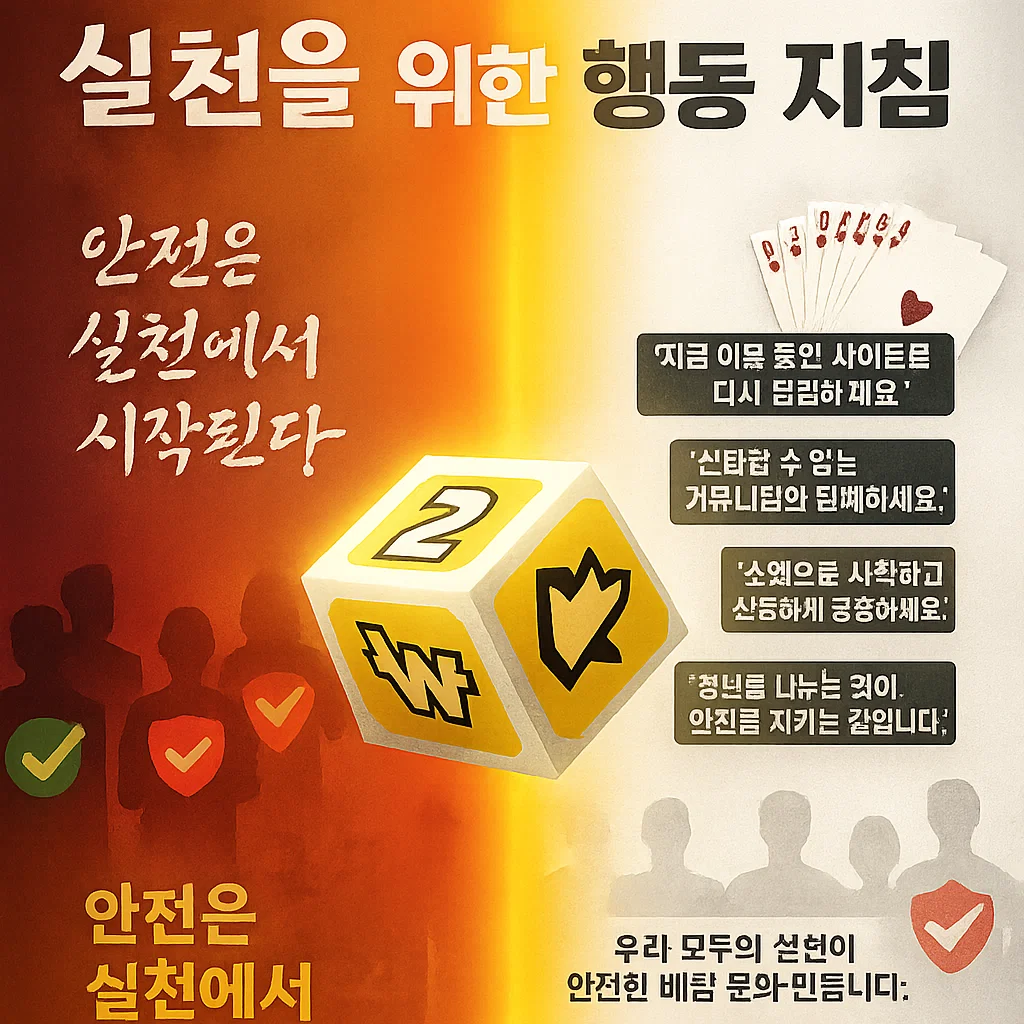 이 글에서 제시한 검증 절차와 체크리스트를 활용하여 안전놀이터를 선택하세요. 커뮤니티의 정보를 적극적으로 활용하고, 의심스러운 부분이 있다면 과감하게 이용을 중단하는 용기도 필요합니다.